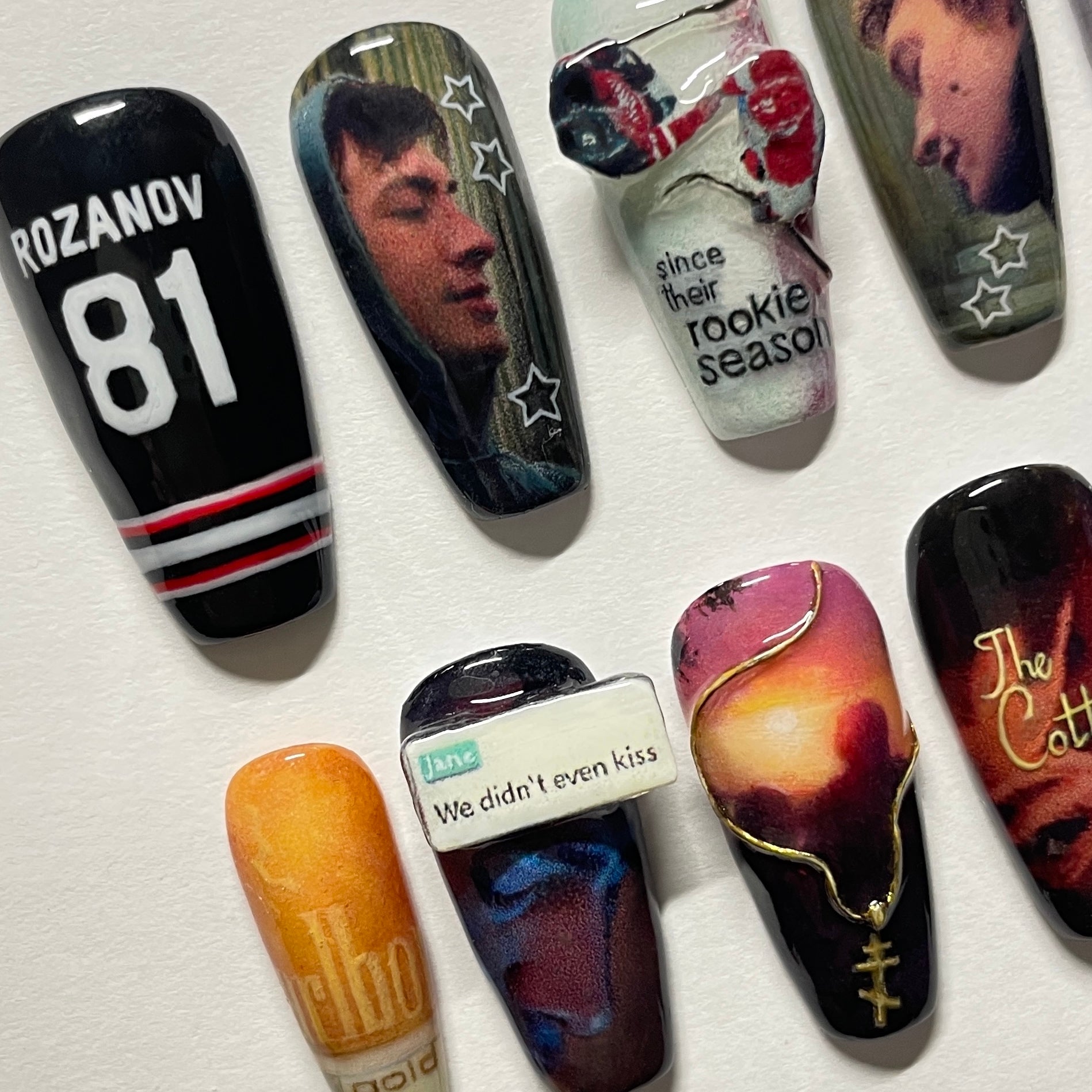 For custom sizing: Please select "Custom" and leave your Individual nail sizes or measurements (either works for me) at checkout in the note box in the order of: Thumb, Index, Middle, Ring, Pinky. EX: 18 mm, 13 mm, 16 mm, 11 mm, 9 mm. OR 0, 3, 5, 5, 8.
