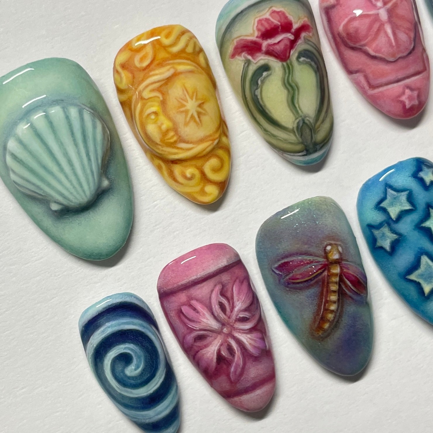 For custom sizing: Please select "Custom" and leave your Individual nail sizes or measurements (either works for me) at checkout in the note box in the order of: Thumb, Index, Middle, Ring, Pinky. EX: 18 mm, 13 mm, 16 mm, 11 mm, 9 mm. OR 0, 3, 5, 5, 8.